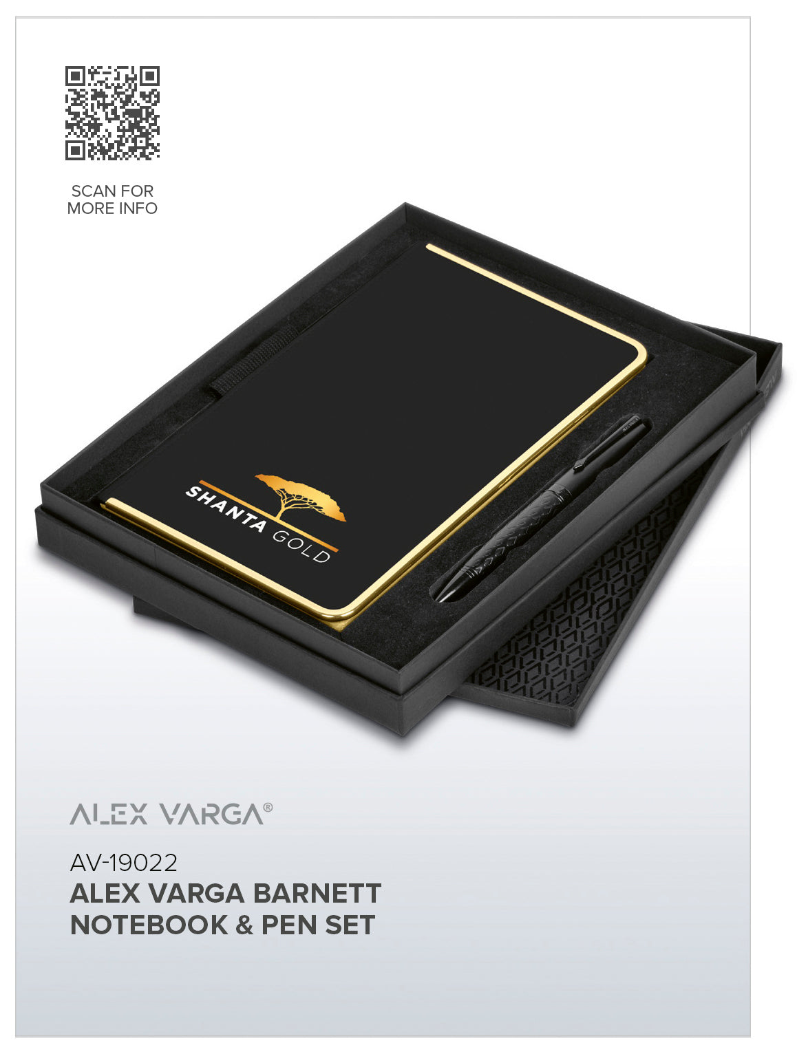 The smooth, matte black material of this hard cover notebook provides a tasteful backdrop to the glamorous gold of the metal frame and page edges. It’s packaged together with a high performance Alex Varga Ball Pen to create a premium writing set.