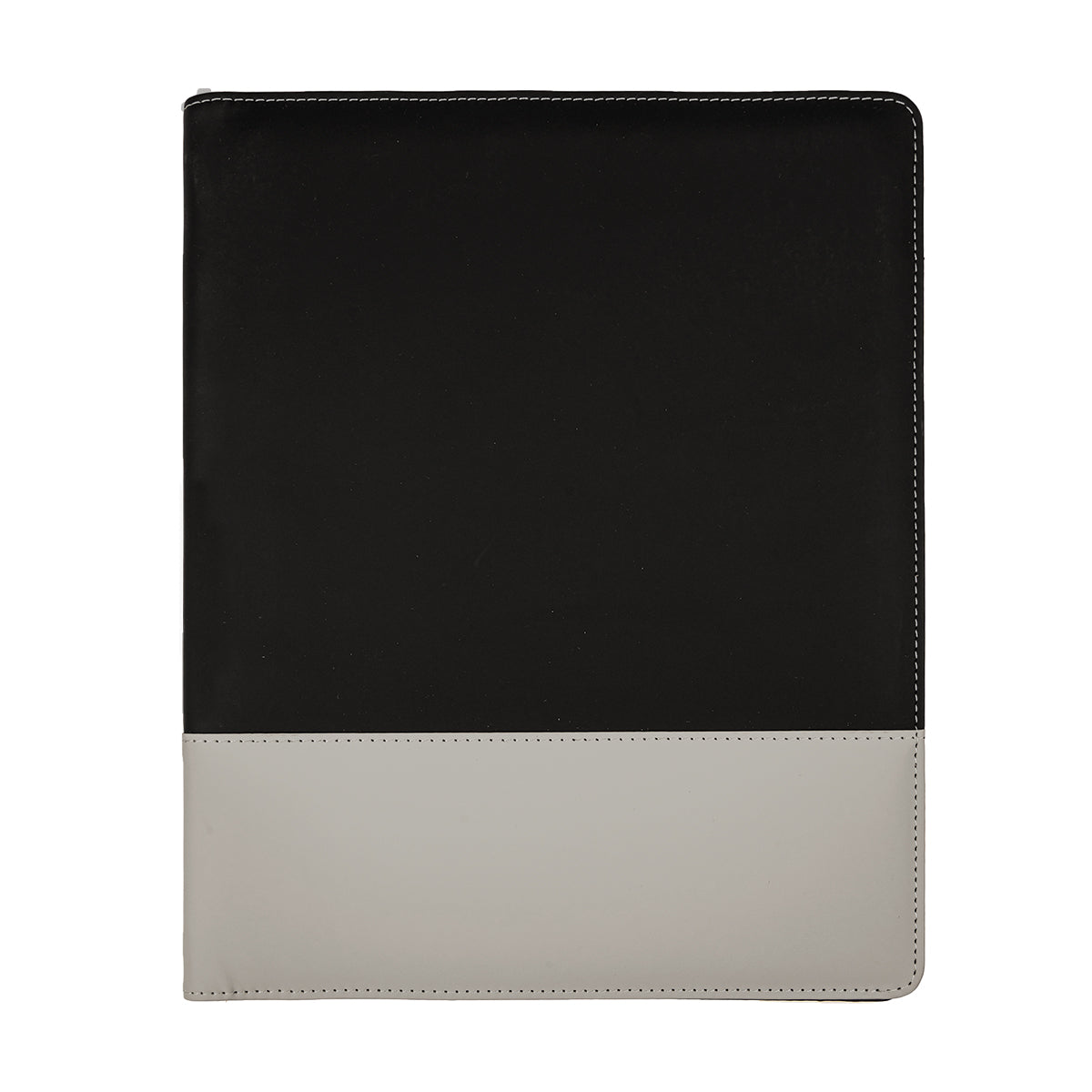 The Sahara A4 Folder, a testament to durability and style. Manufactured from resilient PU material, it boasts a striking combination of grey and black hues. Open it up to reveal storage compartments on both sides, perfectly designed to accommodate cards and documents with ease. The Sahara A4 Folder redefines sophistication in every detail.